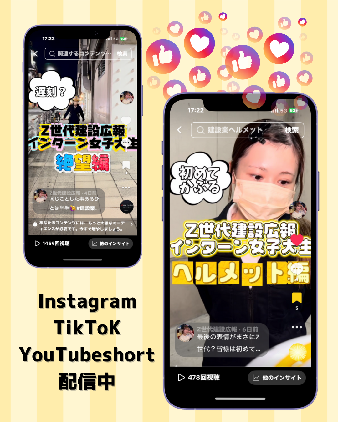 建設業未経験の女の子が、ハコブネの広報担当としてゼロから建設業界に挑戦。SNSを中心に発信を続けた結果、1年間で400件以上の問い合わせを獲得。 現場の魅力や働く人のリアルを等身大の目線で届けることで、若年層からの認知が一気に拡大。採用だけでなく集客にもつながり、「SNSが苦手な業界でも結果を出せる」ことを証明しました。SNSの総フォロワー数2万人。総再生回数は1500万回突破!